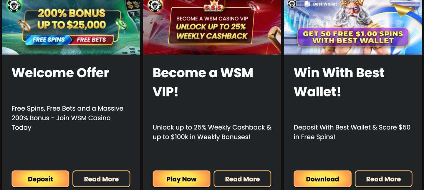 Alle neuen Spieler werden mit einem unschlagbaren Bonuspaket begrüßt, um ihre WSM-Reise zu starten.