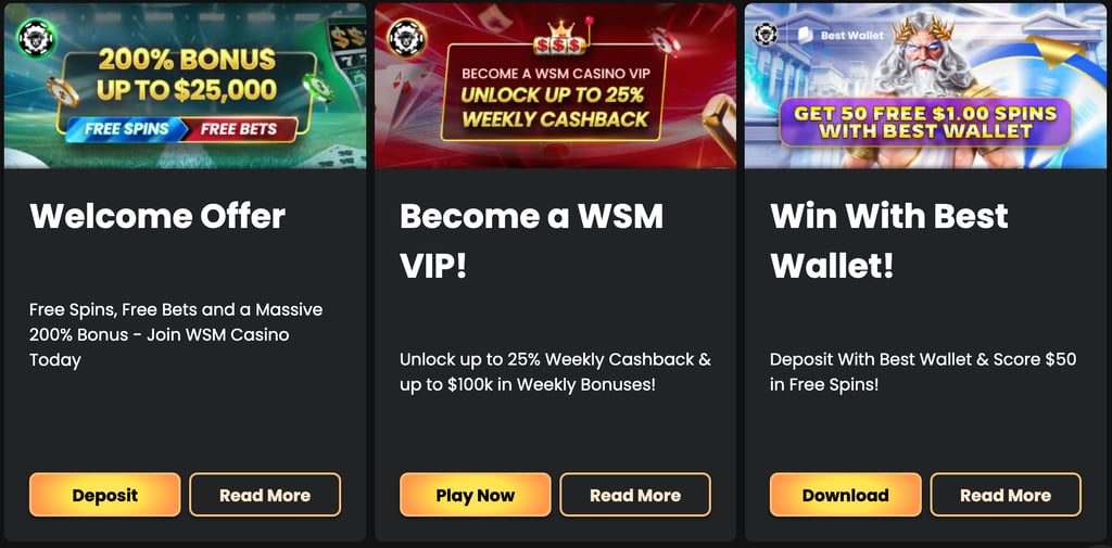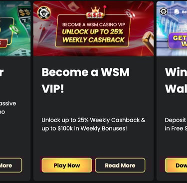 Tritt jetzt dem WSM Casino bei, um deinen Kein Einzahlungsbonus zu sichern und viele spannende Aktionen zu entdecken. Von Freispielen über Cashback-Angebote bis hin zu VIP-Belohnungen – das WSM Casino bietet dir alles für ein unvergessliches Spielerlebnis. Jetzt registrieren und deine Reise zum Reichtum beginnen!