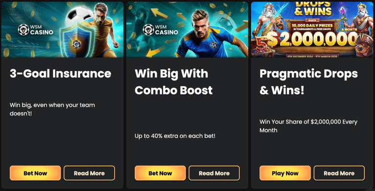 WSM Casino accepts players from around the world, including most European countries, Canada, Australia, and select regions in South America and Asia. However, some promo codes may not be available in all locations due to regional restrictions. Always check the bonus terms in your country before depositing.